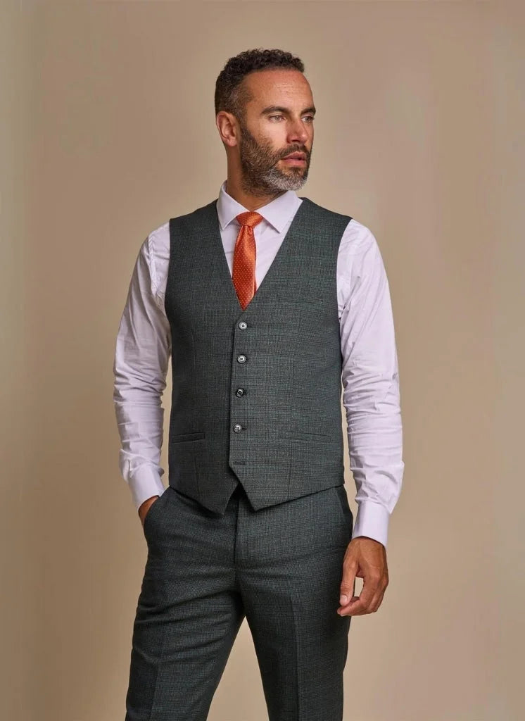 Für einen eleganten Look trage die Cavani Caridi - Weste Olivgrün mit einem weißen Hemd und einer passenden Krawatte. Füge ein Paar elegante Lederschuhe hinzu, und du bist bereit, Eindruck zu machen.