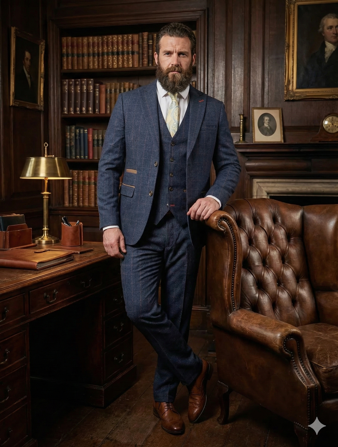 Das ist nicht einfach ein Anzug. Das ist der CASTLESON Admiral – ein dreiteiliger navy-karierter Anzug, der Klasse, Kraft und Charakter verkörpert. Ein Anzug für den Mann, der seine eigene Geschichte schreibt. Bereit, den Unterschied zu machen? Treten Sie ein in Ihren neuen Gentlemen’s Club. Ihre Bestellung? Die wartet bereits hinter dem Samtvorhang auf Sie.