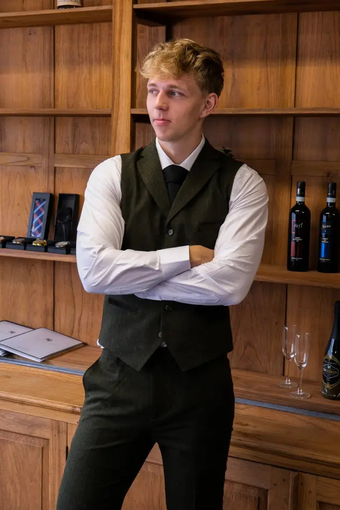 TAVERNY Chief - Heren pak Olive tweed - driedelig pak