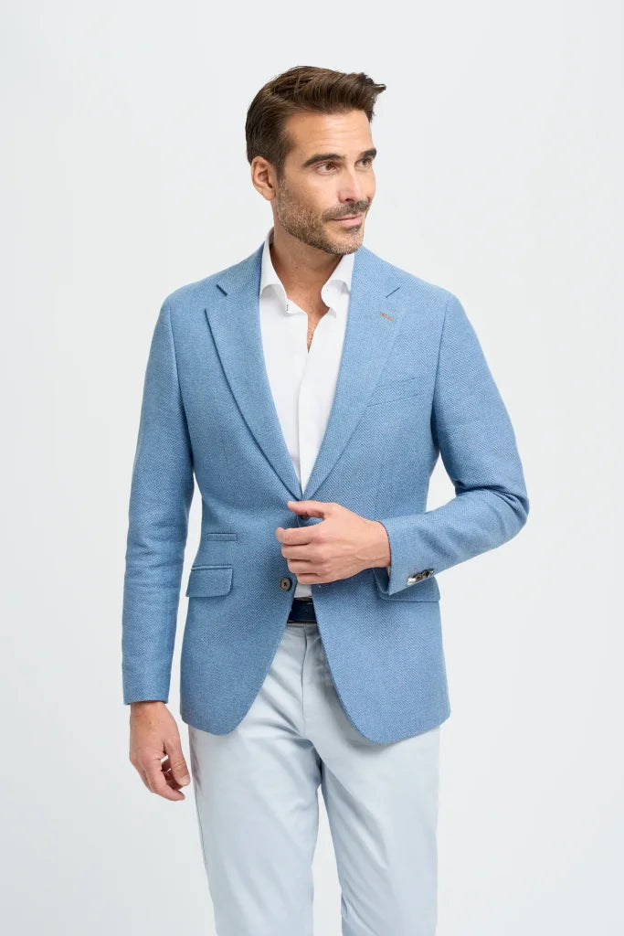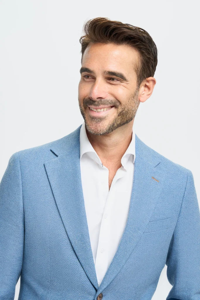 Das Felix Blue Sakko hat eine taillierte Passform, was bedeutet, dass es perfekt für den Mann ist, der eine enge, aber komfortable Passform bevorzugt. Der hochwertige Stoffmix macht das Sakko nicht nur stilvoll, sondern auch angenehm zu tragen. Das Fischgrätmuster ist subtil und verleiht dem Sakko zusätzliche Dimension, ohne dass es zu überladen wirkt. Die frische blaue Farbe passt sowohl zu geschäftlichen als auch zu lässigen Anlässen, sodass du nicht nur im Konferenzraum, sondern auch außerhalb Eindruck machst.