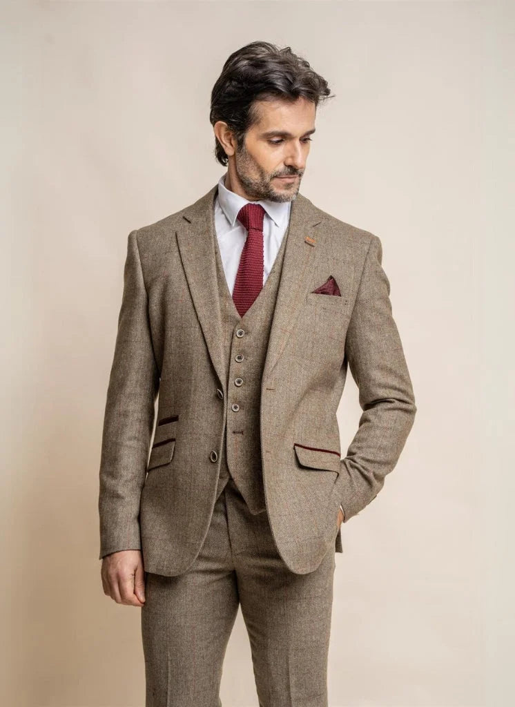 Wusstest du, dass du diesen Anzug auch in Einzelteilen bestellen kannst? So kannst du das Sakko, die Weste und die Hose in verschiedenen Größen bestellen, sodass der Anzug noch besser zu dir passt! Hier sind die Einzelteile: