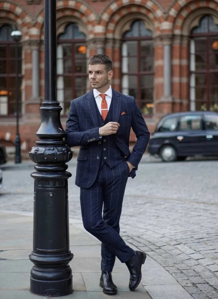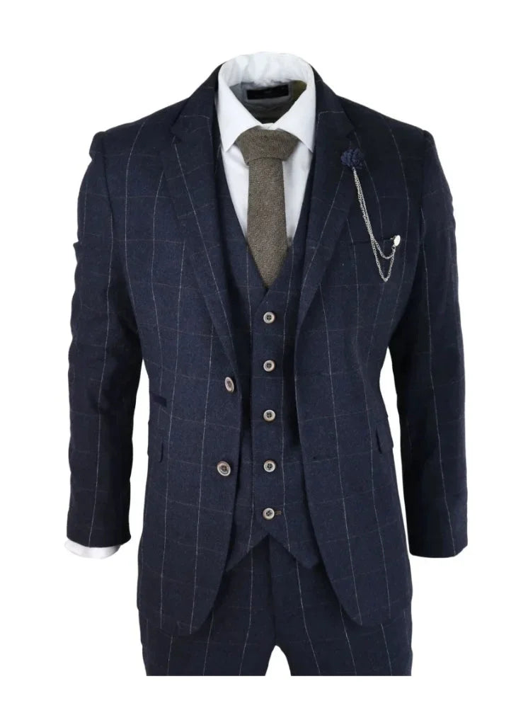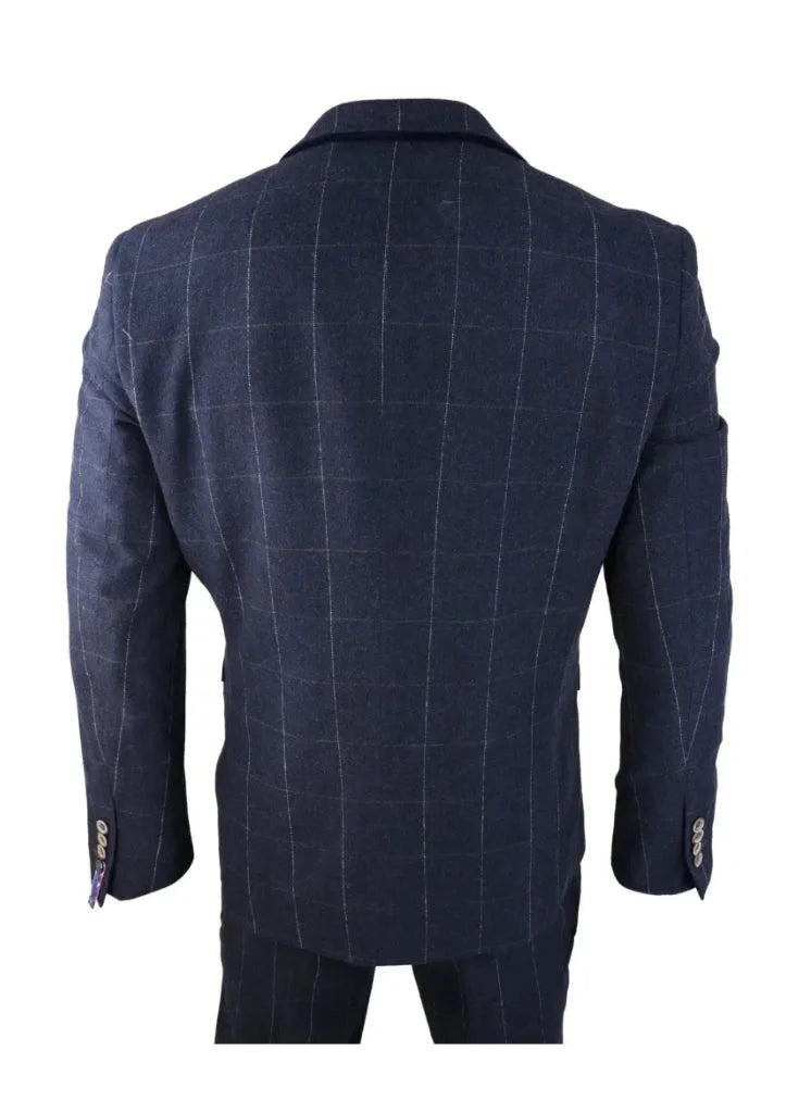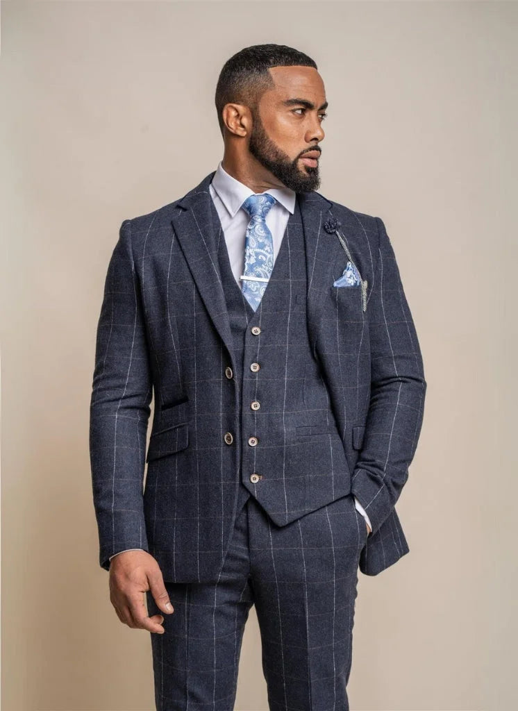 Gesamtes Outfit: Karierter Anzug Navy Blau - Dreiteiliger Cavani Angels Navy Anzug