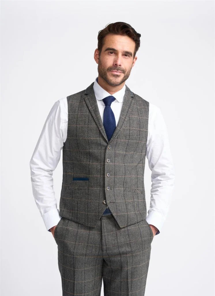 Wusstest du, dass du diesen Anzug auch in Einzelteilen bestellen kannst? So kannst du das Sakko, die Weste und die Hose in verschiedenen Größen bestellen, sodass der Anzug noch besser zu dir passt! Hier sind die Einzelteile: