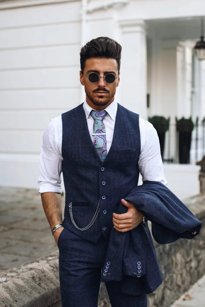 Dreiteiliger Anzug Cavani Peaky Style - Carnegi Navy Tweed