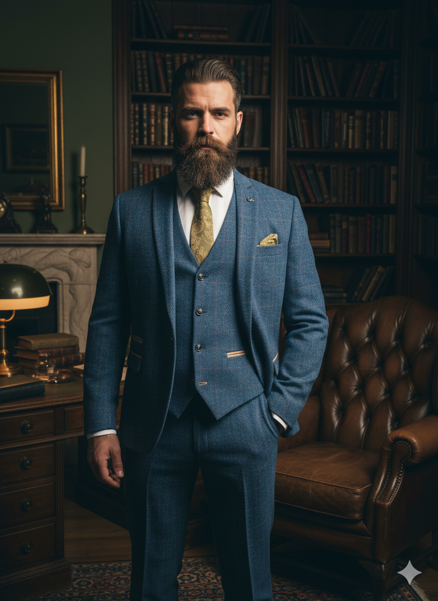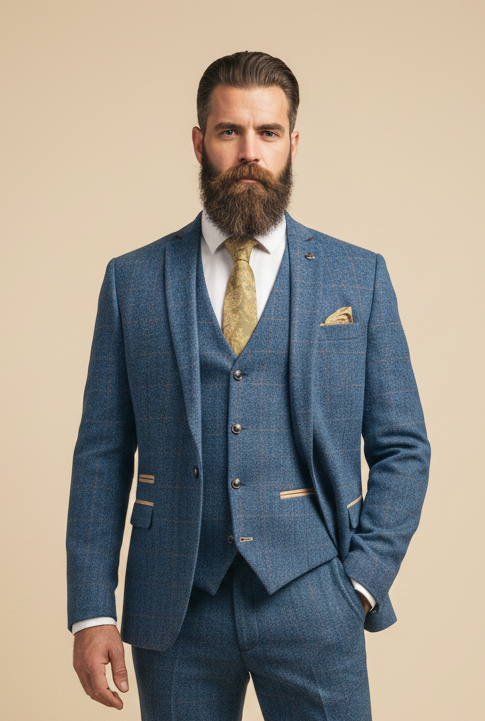 Es gibt Anzüge, die man trägt – und Anzüge, die einen tragen. Der Dion Blue Herringbone gehört zweifellos zur zweiten Kategorie. Nicht nur wegen des markanten, eleganten Fischgrätenmusters, sondern auch durch die perfekte Balance aus britischem Charme und moderner Schnittführung. Dies ist kein Anzug für irgendeinen Tag. Dies ist der Anzug für Momente, in denen du Eindruck hinterlassen, Erinnerungen schaffen – und vielleicht ein Stück Geschichte schreiben willst. Ob Hochzeitstag, elegante Clubnacht an der Themse oder ein besonderer geschäftlicher Anlass – dieser Anzug setzt Maßstäbe.