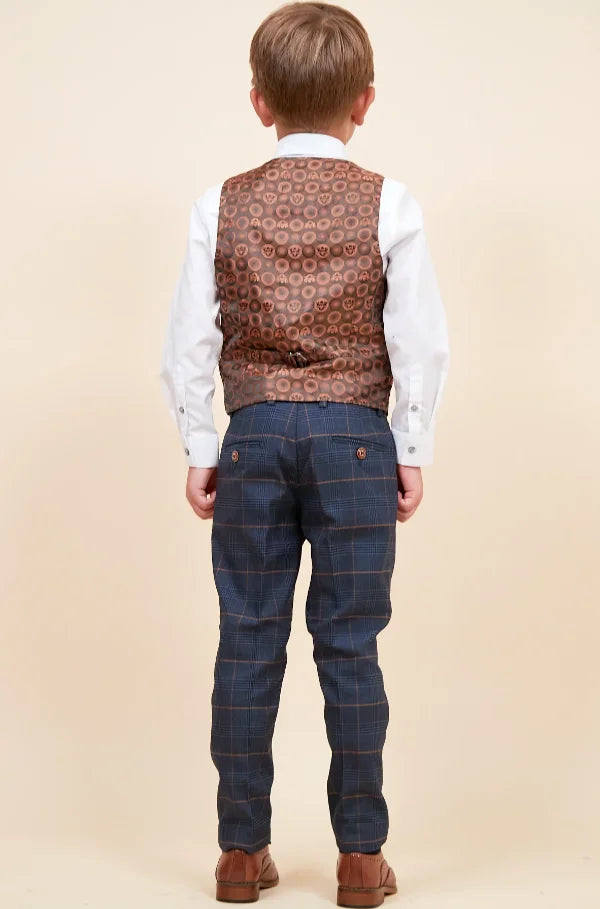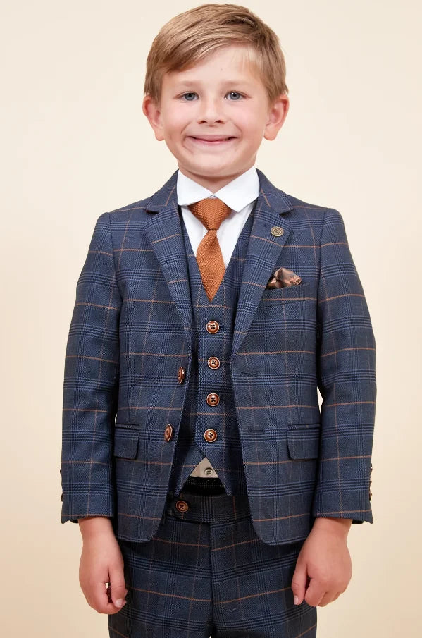 Dieser wunderschöne dreiteilige Tweed-Anzug für Kinder ist von der Marke Marc Darcy. Er besteht aus 80% Polyester, 17% Viskose und 3% Elasthan. Dadurch ist er von guter Qualität und fühlt sich angenehm an.