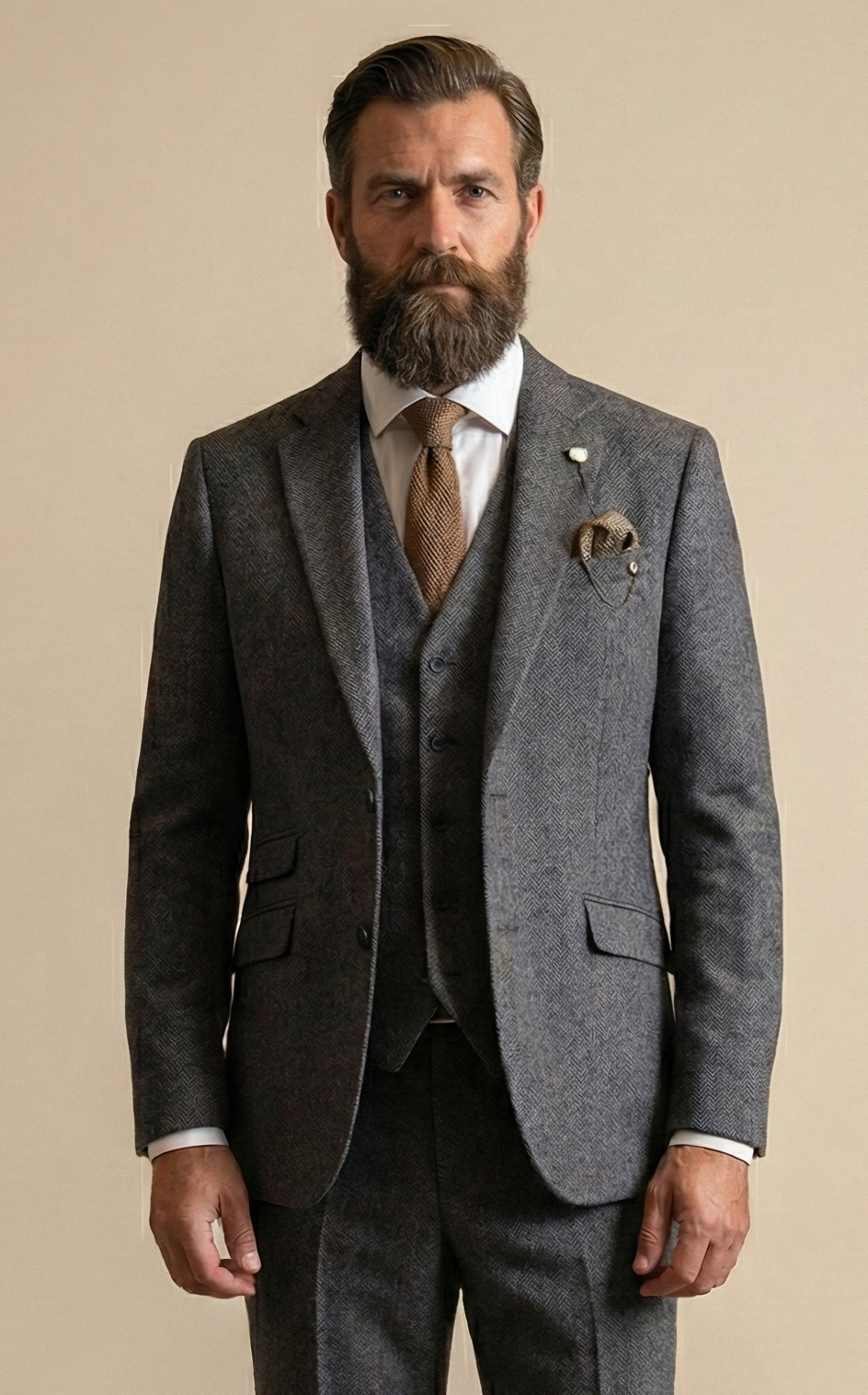 Vervollständige deinen Look mit einer klassischen Taschenuhr und einer stilvollen Schiebermütze, und hebe dich von der Masse ab. Ob du einen Whiskey mit Freunden genießt oder einen wichtigen Termin hast – mit diesem dreiteiligen Anzug strahlst du immer Raffinesse und Stilbewusstsein aus.