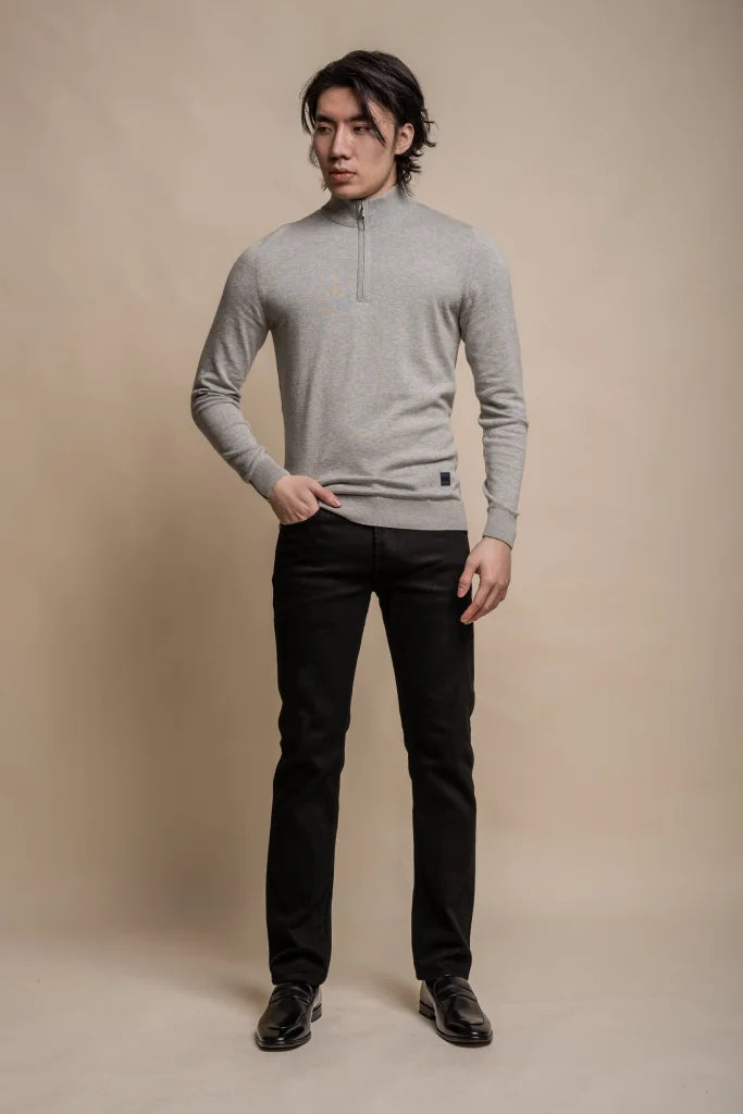 Cavani Avanti Grau - Herrenpullover mit Reißverschluss