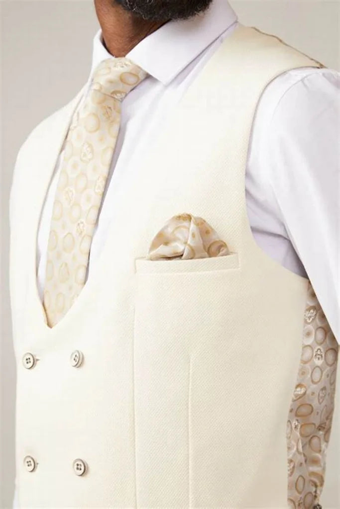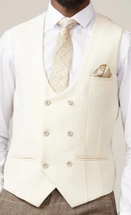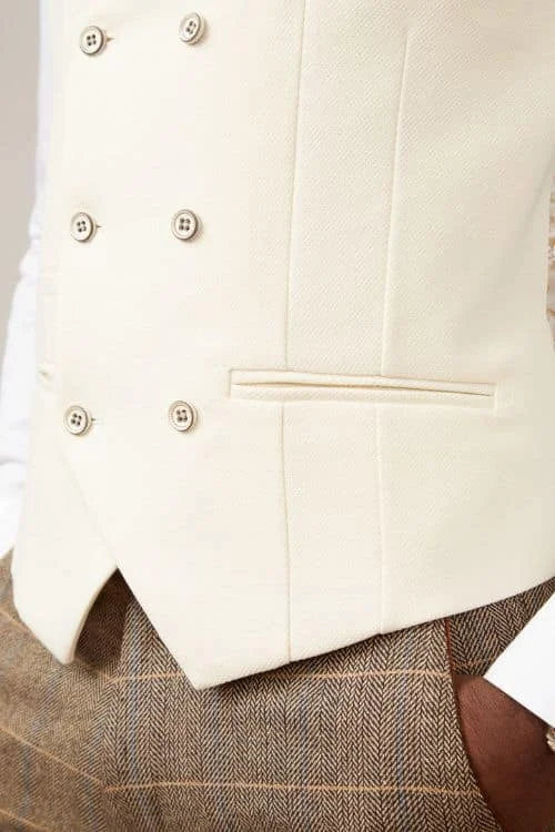 Verleih deinem formellen Look mit unserer cremefarbenen Weste eine Prise Raffinesse. Dieses vielseitige Kleidungsstück ist perfekt zum Kombinieren mit unseren 3-teiligen und 2-teiligen Anzügen, um dir unzählige Stiloptionen zu bieten.
