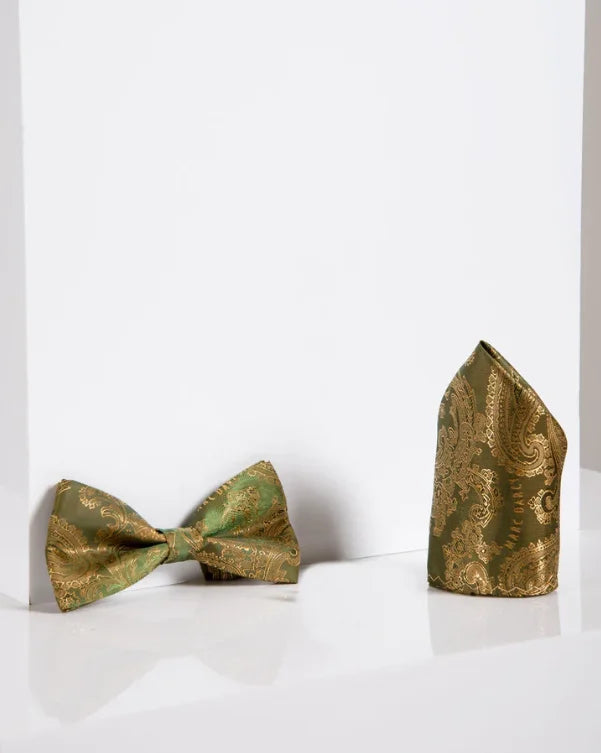 Marc Darcy Gentlemens Set Tan Paisley Fliege mit Einstecktuch