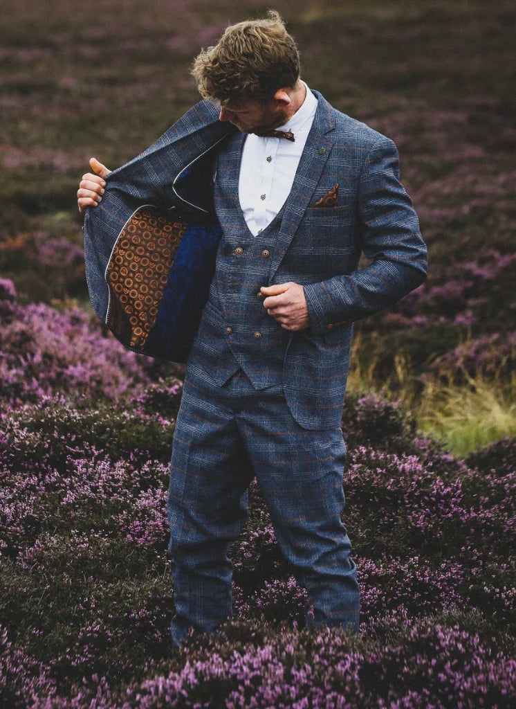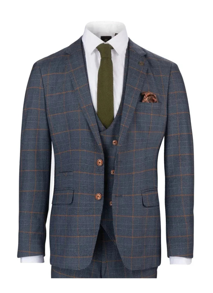 Das Jenson Sky Blue Sakko besticht durch sein Rautenmuster, das klassischen Charme ausstrahlt. Das Revers trägt zur formellen Ausstrahlung bei, während der doppelte Rückenschlitz eine moderne Note und zusätzliche Bewegungsfreiheit bietet. Die braunen Knöpfe kontrastieren wunderschön mit der blauen Farbe des Sakkos und verstärken die gesamte Exklusivität.