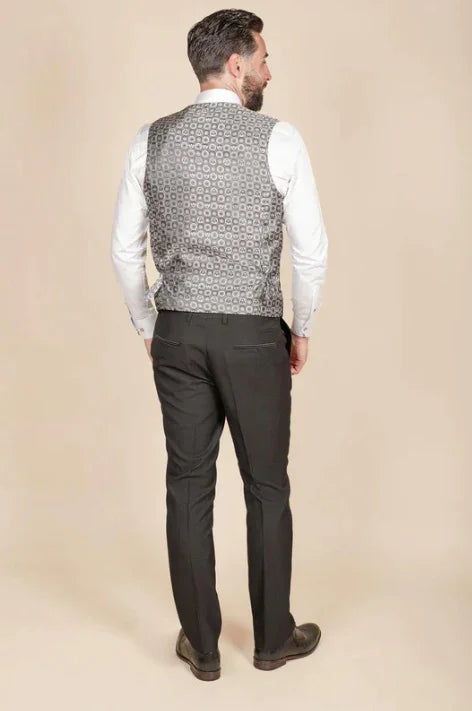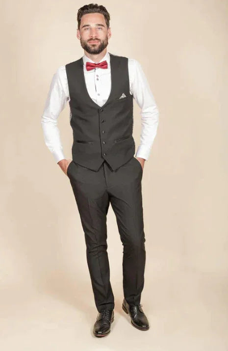 Aber dieser Smoking besteht nicht nur aus einem Blazer. Das Einreiher-Weste sorgt für eine zusätzliche Schicht Wärme und Stil. Es ist mit verstellbaren Trägern für eine perfekte Passform und zusätzlicher Funktionalität mit seinen Taschen auf der Vorderseite entworfen.