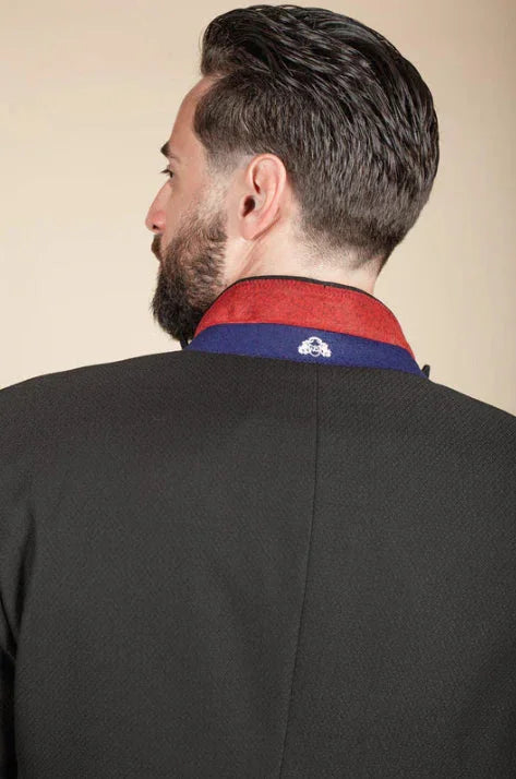 Beginnen wir mit dem Blazer-Teil des Smokings. Mit seinem Ein-Knopf-Design und der Peak-Lapel gibt Ihnen der Blazer einen eleganten und dennoch modernen Look. Er besteht aus einer Mischung aus 80% Polyester, 17% Viskose und 3% Elasthan, was eine perfekte Passform und ein langlebiges Material garantiert. Die drei Knöpfe an den Manschetten und die funktionalen Innen- und Außentaschen runden das Ganze ab.