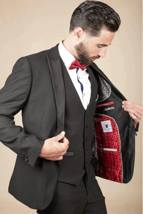 Schwarzer Smoking in 3 Teilen. Auf der Suche nach dem perfekten Smoking für einen formellen Anlass? Suchen Sie nicht weiter als unseren wunderschönen schwarzen Smoking, der aus drei Teilen besteht. Es ist die ideale Wahl für Männer, die stilvoll und raffiniert aussehen möchten, ohne dabei auf Komfort zu verzichten.