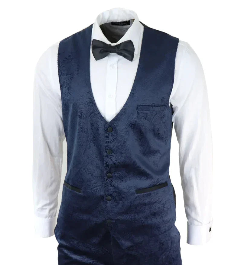 Zeitlos Die navyfarbe und der Paisley-Stoff machen diesen Smoking zeitlos und für jede Gelegenheit geeignet.